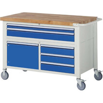 -Fahrbare Werkbank, 5 Schubladen, 1 Tür Diese Werkbänke sind fahrbar.