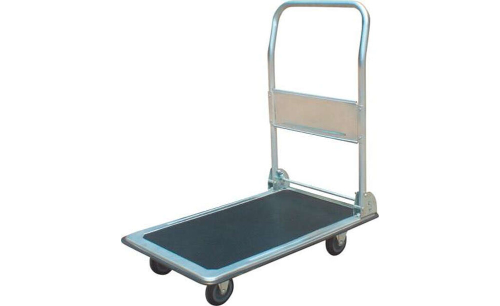 -Plattformwagen, klappbar Dieser klappbare Schiebebügelwagen verfügt über eine verstärkte Ladefläche und einen umlaufenden Stoßschutz.