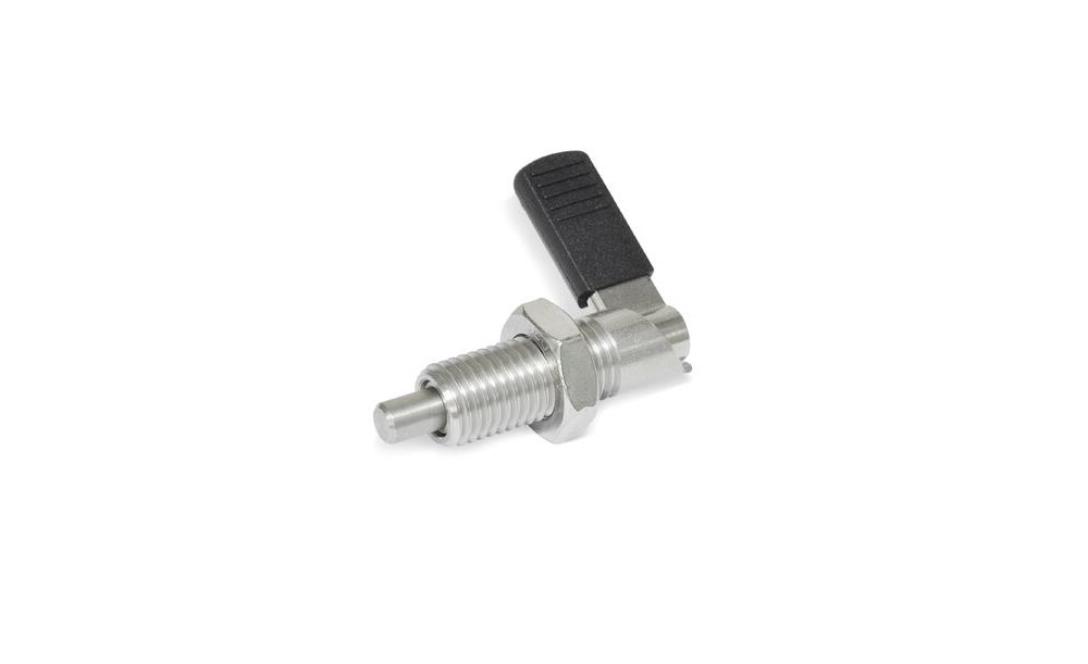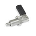 Bei Edelstahl-Rastriegeln GN 721.5 wird der Raststift durch eine 180°-Drehung des Riegels (auf Anschlag) eingezogen.