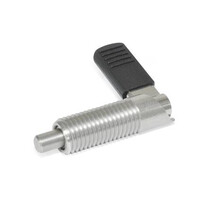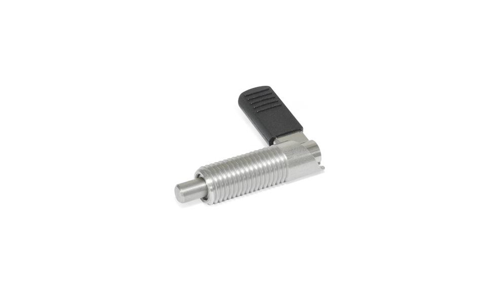 Bei Edelstahl-Rastriegeln GN 721.5 wird der Raststift durch eine 180°-Drehung des Riegels (auf Anschlag) eingezogen. Bei gegenüberliegender Anordnung von Rastriegeln erlauben die links- bzw. rechtssteigenden Kurven, eine sinnfällige Betätigung, nämlich die gleiche Bestätigung des Riegels.