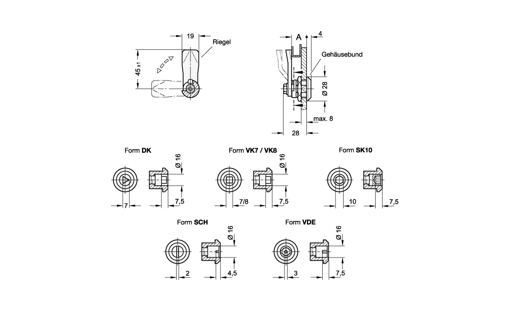 Verriegelungen, mit Steckschlüssel, Gehäusebund schwarz