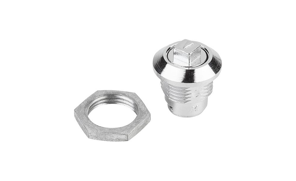 Kleiner Drehriegel mit federgelagerter Zunge. Rechts oder links einsetzbar mit einem Schließweg von 90°. Der Drehriegel kann vormontiert eingebaut werden. Die Befestigungsmutter ist einseitig als Erdungsmutter mit Krallen ausgeführt.