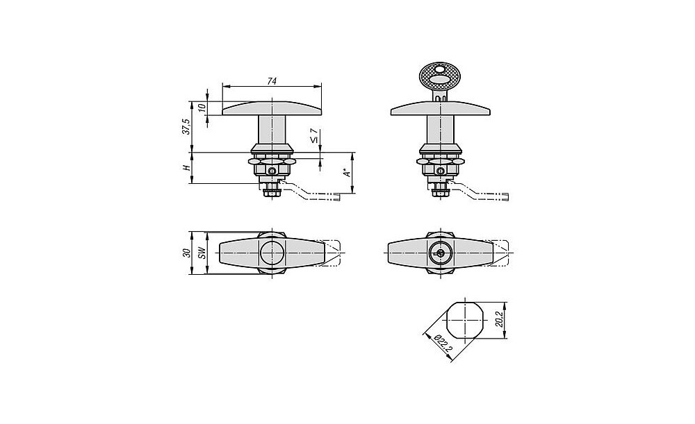 *Das Maß A ergibt sich aus der Kombination von Drehriegel und Zunge und wird bei den passenden Zungen angezeigt.