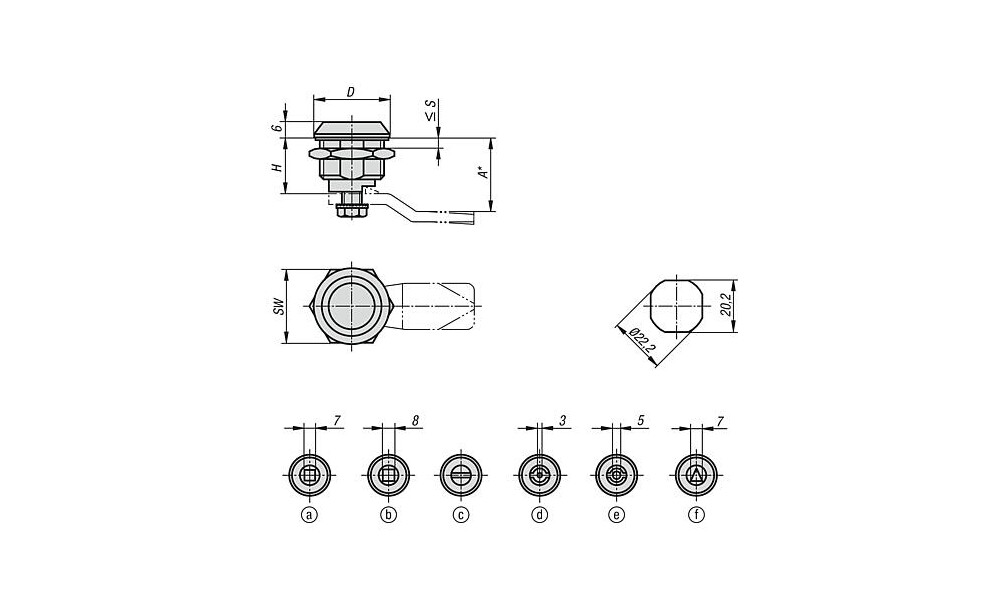 *Das Maß A ergibt sich aus der Kombination von Drehriegel und Zunge und wird bei den passenden Zungen angezeigt.