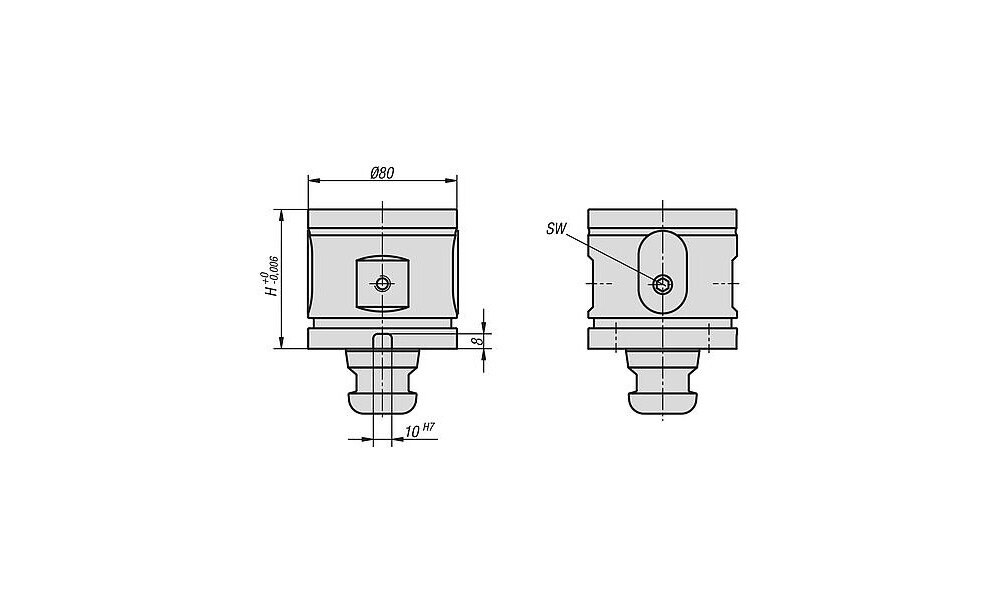 5-ACHS-AUFBAUSPANNMODUL UNILOCK, SYSTEMGRÖßE 80MM, H=75, FORM:A OHNE VERDREHSICHERUNG, VERGÜTUNGSSTAHL