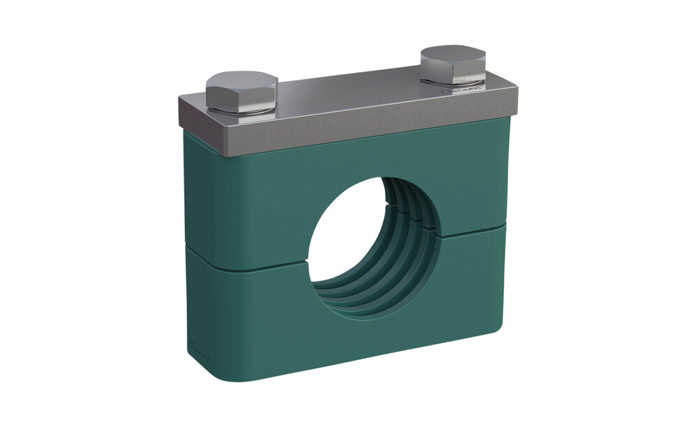 Komplettschelle Schwere Baureihe Gr. 6S Ø60,3mm Polypropylen W19 Deckpl., AS-Schraube gerippt, mit Vorspannung