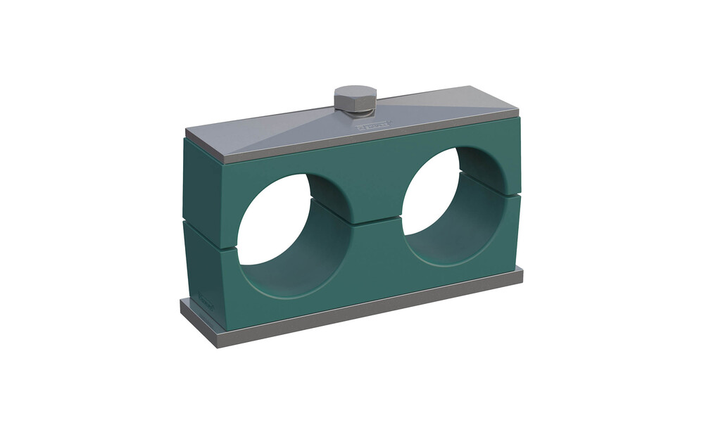 Komplettschelle Doppel-Baureihe Gr. 1D Ø8mm Polypropylen W5 Anschweißpl., kurz Deckpl., AS-Schraube glatt, ohne Vorspannung