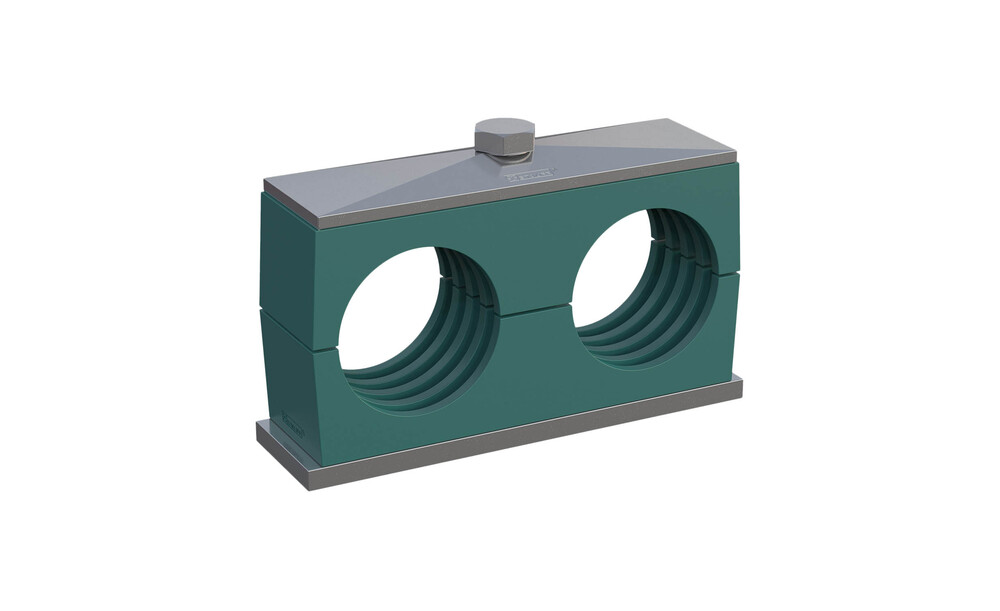 Komplettschelle Doppel-Baureihe Gr. 1D Ø9,5mm Polypropylen W5 Anschweißpl., kurz Deckpl., AS-Schraube gerippt, mit Vorspannung