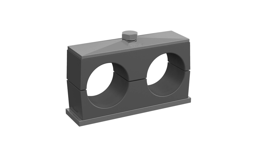 Komplettschelle Doppel-Baureihe Gr. 2D Ø14mm Polyamid W10 Anschweißpl., kurz Deckpl., AS-Schraube glatt, ohne Vorspannung