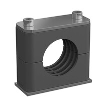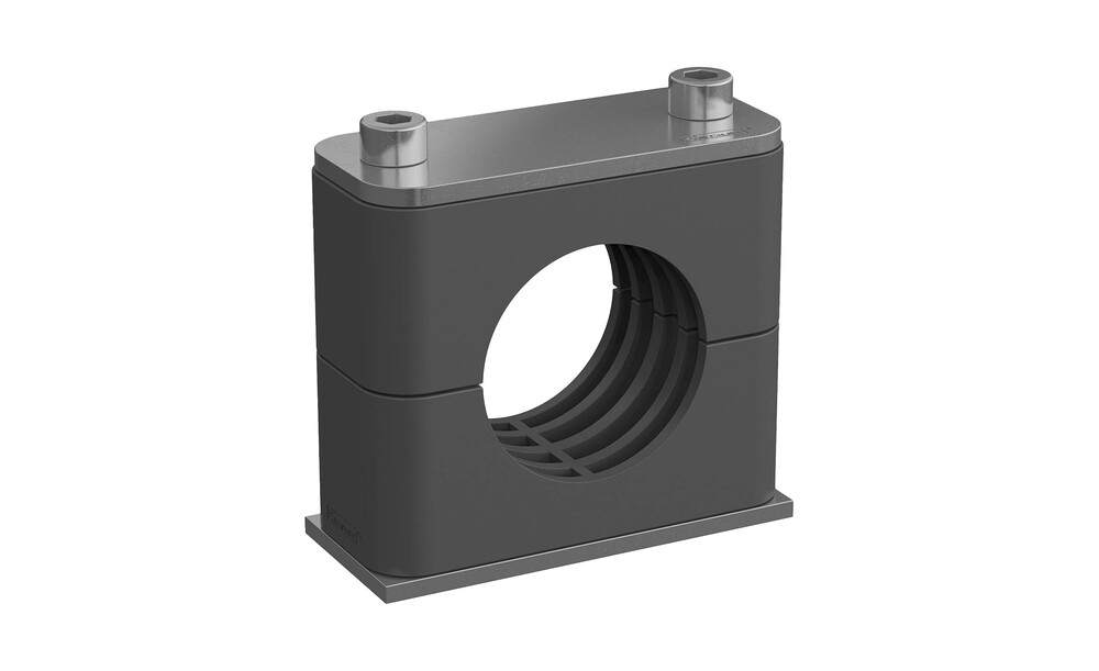 Komplettschelle Standard-Baureihe Gr. 5 Ø33,7mm Polyamid W10 gerippt, mit Vorspannung Anschweißpl., kurz Deckpl., IS-Schraube