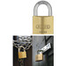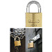 - Ausführungmassiver Messingkörper, echter Messing-Stiftzylinder, Bügel aus Stahl, Innenteile aus nichtrostendem Material, Bügel rastet ohne Schlüssel ein, doppelte Verriegelung, Stahlbügel vernickelt und einsatzgehärtet, je Schloss 2 Schlüssel, verschiedenschließend, individuell einstellbarer Zahlencode