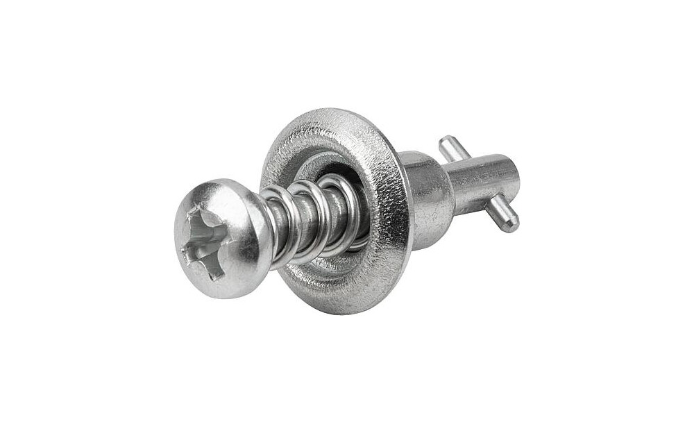 Vierteldrehverschlüsse zum sicheren Halten und Verschließen von Klappen, Behälterdeckeln, Maschinenverkleidungen und dergleichen. Der Verschluss wird durch eine 90° Drehung geschlossen und geöffnet. Dabei bewegt sich der sogenannte Querstift im Verschlussbolzen über eine Kurve im Verschlussunterteil und spannt so die Feder vor. Am Endpunkt der Kurve befindet sich eine kleine Vertiefung in welcher der Kreuzstift einrastet. Die von der Feder erzeugte Vorspannkraft des Verschlusses sorgt dafür, dass die Verbindung vibrationssicher geschlossen bleibt.