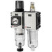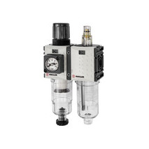 Wartungseinheit 2-tlg. »FUTURA-mini«, PC-Behälter, Kompaktmano, BG 0, G 1/4, PE 1,5 - 12 bar, Regelbereich 0,5 - 8 bar, Ablass: HA. Zweiteilige Wartungseinheiten in modernem Design und mit hervorragenden Durchflusswerten. Arretierbarer Membrandruckregler mit Sekundärentlüftung.