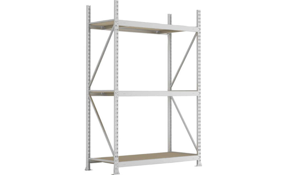Weitspannregal META REGALBAU, MINI-RACK B2200xT1050xH2500 mm Grundfeld 4 Spanplatten Fachlast 600 kg META