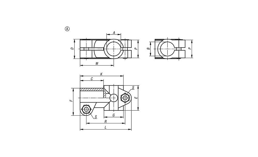 ROHRVERBINDER T-STÜCK, FÜR RUNDROHRE, FORM:A, EDELSTAHL, A=12,1, B=12,1