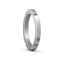 KM(L) Wellenmuttern mit metrischem Trapezgewinde dienen zur Befestigung von Lagern auf einer Welle. An den vier abstandsgleichen Schlitzen am Umfang können Haken- und Schlagschlüssel angesetzt werden. Diese Wellenmuttern werden mit einer MB(L) Sicherungsscheibe auf der Welle befestigt. KM Wellenmuttern können alternativ auch die stärkere Sicherungsscheibe MB .. verwenden. KM Wellenmuttern sind wiederverwendbar (sofern unbeschädigt). Vorteile: Einfaches, stabiles und zuverlässiges Befestigungselement;Einfacher Ein- und Ausbau;Gewindedurchmesser von 10 bis 200 mm;Erhältlich für Gewinde M 10x0,75 bis M 200x3 (Größen 0 bis 40)