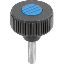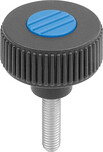RÄNDELRAD GR.2, D1=50 D=M10X30, , FORM:L, THERMOPLAST SCHWARZGRAU RAL7021, KOMP:EDELSTAHL, DECKEL:BLAU