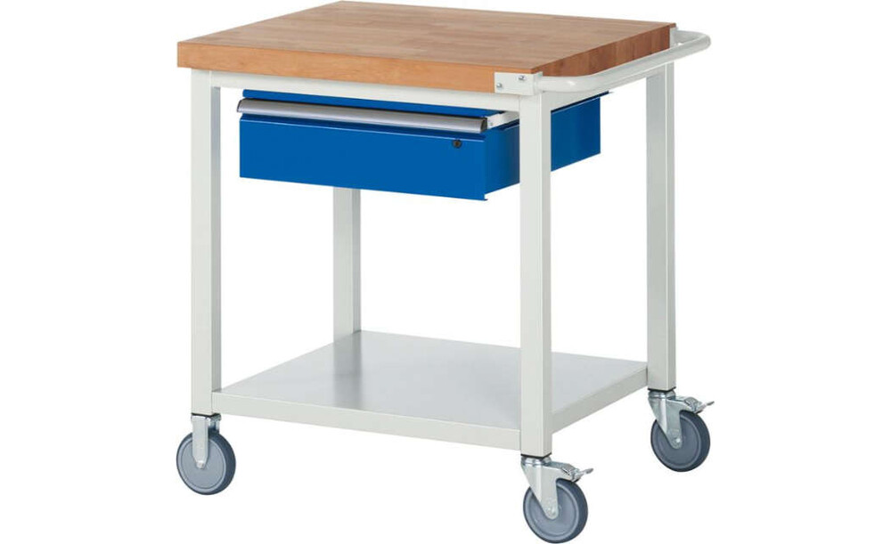 -Fahrbare Werkbank, 1x Schublade, Stahlblech-Ablageboden Diese Werkbänke sind fahrbar.