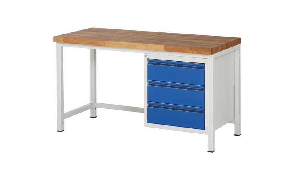 Werkbank RAU, Basic B1500xT700xH840mm RAL 7035/5010 BMP: 40 mm 3 Schubladen