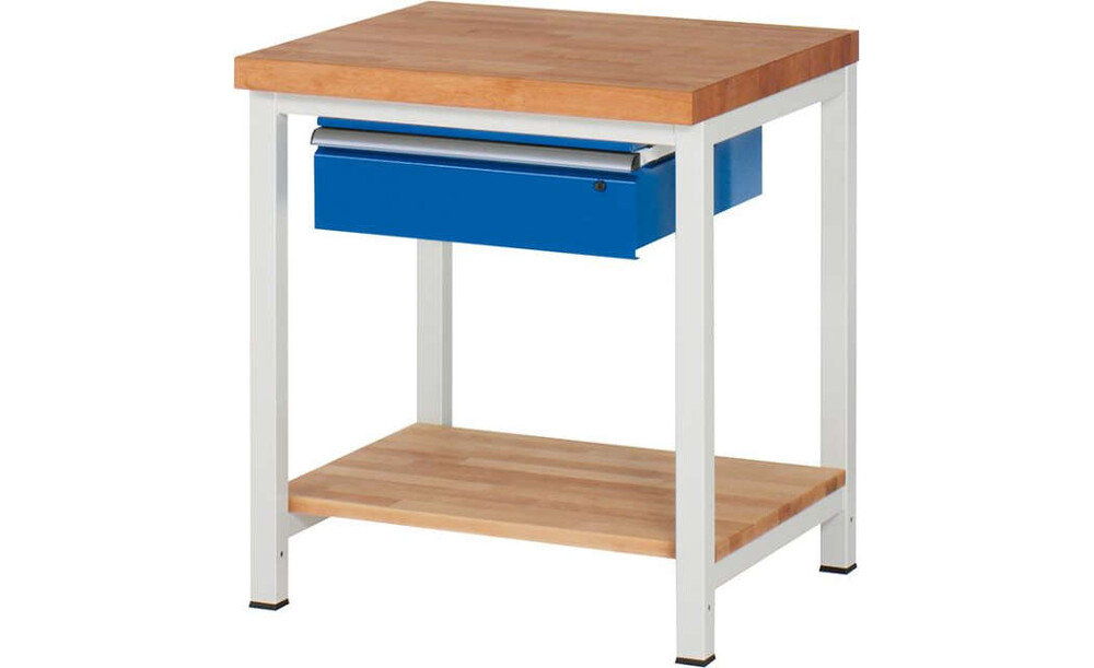-Werkbank (mit 1 Schublade, FH 150 mm u. 1 x Buche massiv-Ablageboden), Tiefe 700 mm Die Werkbänke gibt es in 700 mm Tiefe.