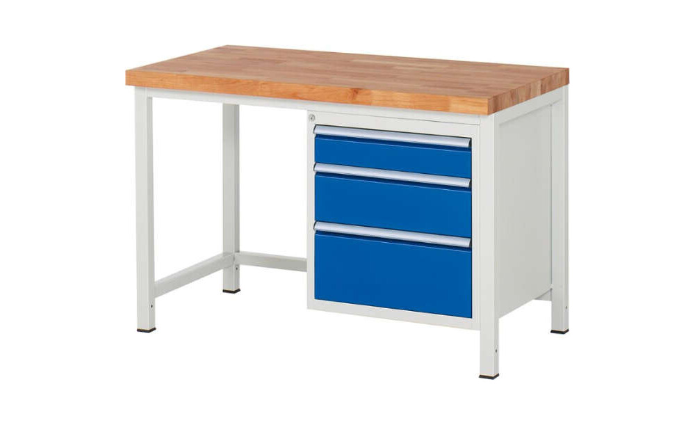-Werkbank (mit 3 Schubladen), Tiefe 700 mm Die Werkbänke gibt es in 700 mm Tiefe.