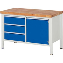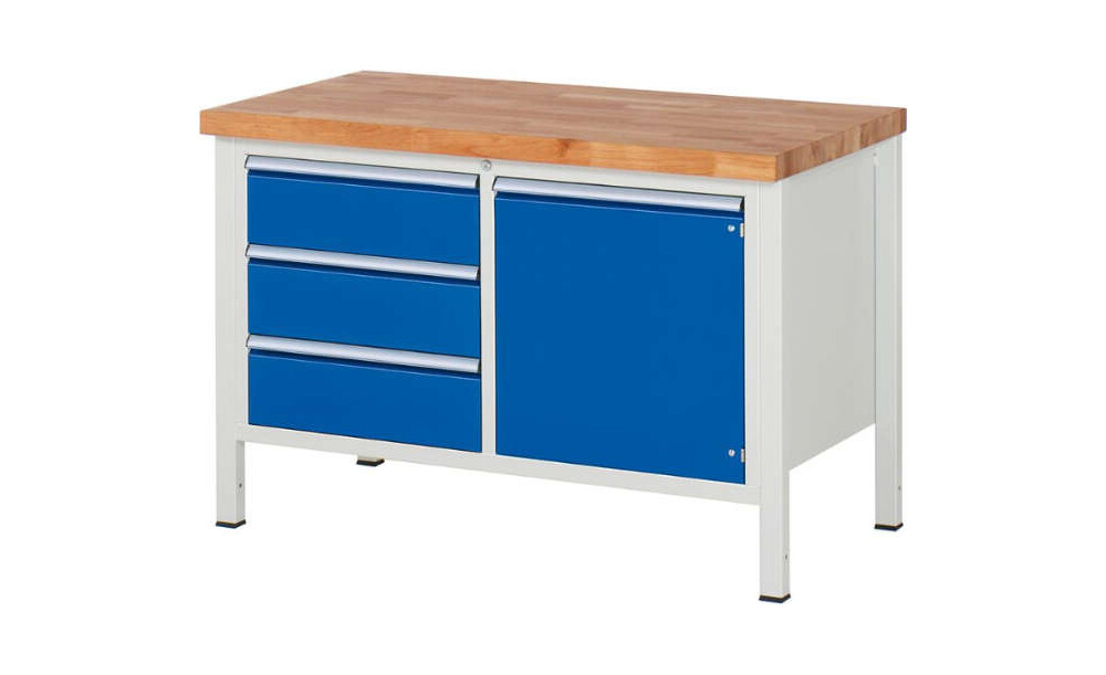 -Werkbank (mit 3 Schubladen, 1 Tür + 1 Fachboden), Tiefe 700 mm Die Werkbänke gibt es in 700 mm Tiefe.