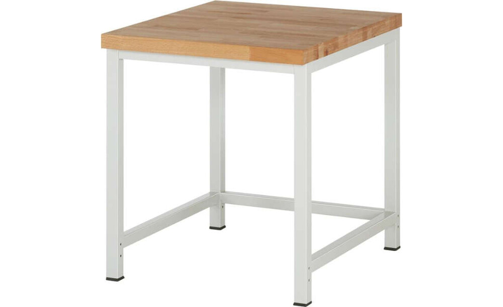 - Schweißkonstruktion: mit Gestellfüßen aus Profil-Stahlrohr (45x45x2 mm) inklusive Tiefenverstrebungen und einem kompletten Rahmen unter der Arbeitsplatte, Gestellfüße mit Antirutschnoppen und vorbereitet für die Nachrüstung einer Höhenverstellung und/oder eines Rollensatzes