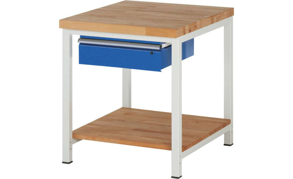 -Werkbank (mit 1 Schublade, FH 150 mm u. 1 x Buche massiv-Ablageboden), Tiefe 900 mm Die Werkbänke gibt es in 900 mm Tiefe.