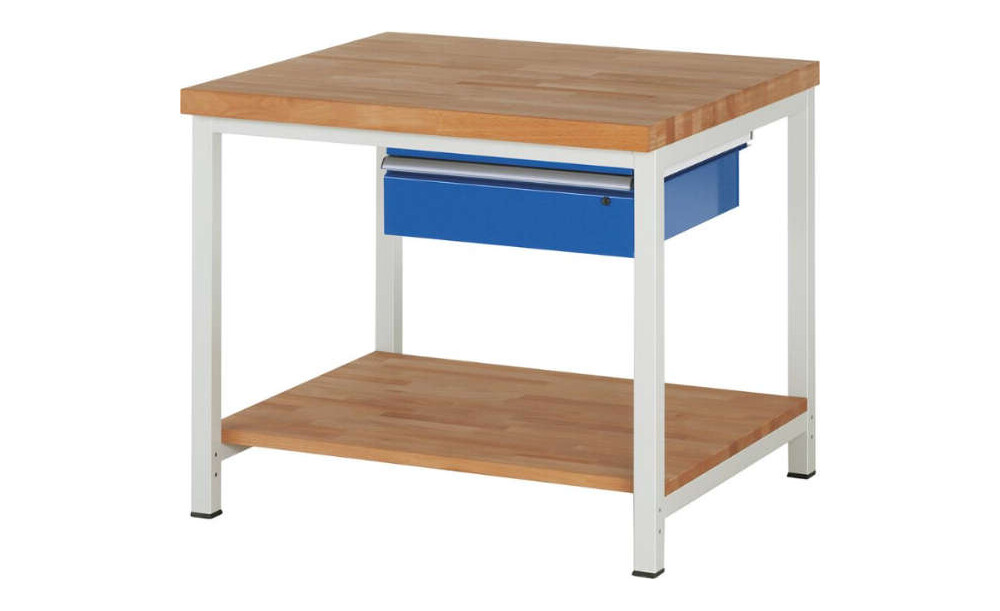 -Werkbank (mit 1 Schublade, FH 150 mm u. 1 x Buche massiv-Ablageboden), Tiefe 900 mm Die Werkbänke gibt es in 900 mm Tiefe.