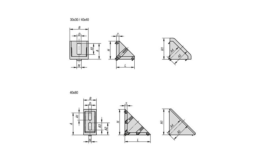 Die Winkel besitzen Zentriernasen für eine genaue und verdrehgesicherte Montage. Die Zentriernasen können bei Bedarf über eine Sollbruchstelle entfernt werden, z.B. für die Montage von Platten. Die offene Seite kann mit der Abdeckkappe verschlossen werden.