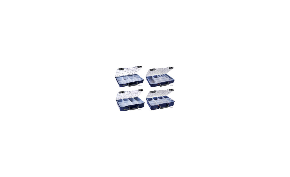 - Rastersysteme in Deckel und Boden verhindern ein Verrutschen der austauschbaren Einsätze und ein Durcheinanderfallen des Inhaltes