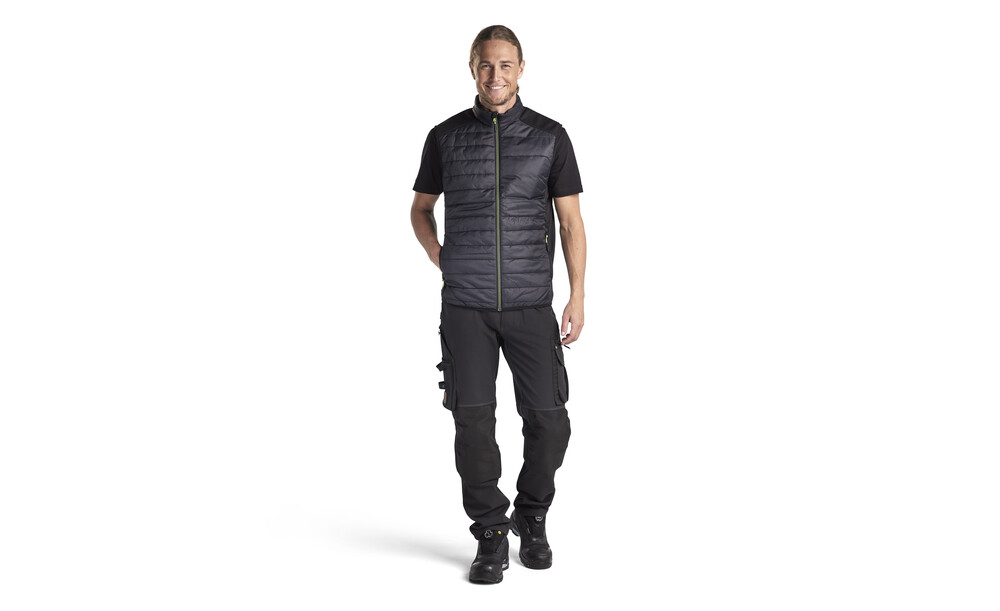 Eine gesteppte Weste aus Blåkläders Unite Kollektion, die sowohl vorne und hinten warm gefüttert ist. Die Seiten- und Schulterbereiche der Weste bestehen aus gestricktem Polyester, was zur exzellenten Bewegungsfreiheit und dem besten Komfort beiträgt. Die Weste bietet eine gute Oberfläche für Veredelungen. Auch als Damenmodell 3864 erhältlich.