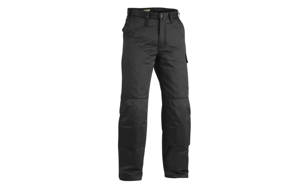Steppfutter. Große Vordertaschen. Gesäßtasche und Beintasche mit Patte und Klettverschluss. Verstärkte Zollstocktasche. Verstärkte Kreutnaht. Verstellbare Knöpfung am Bein. Kniepolstertaschen. Schlüsselring.