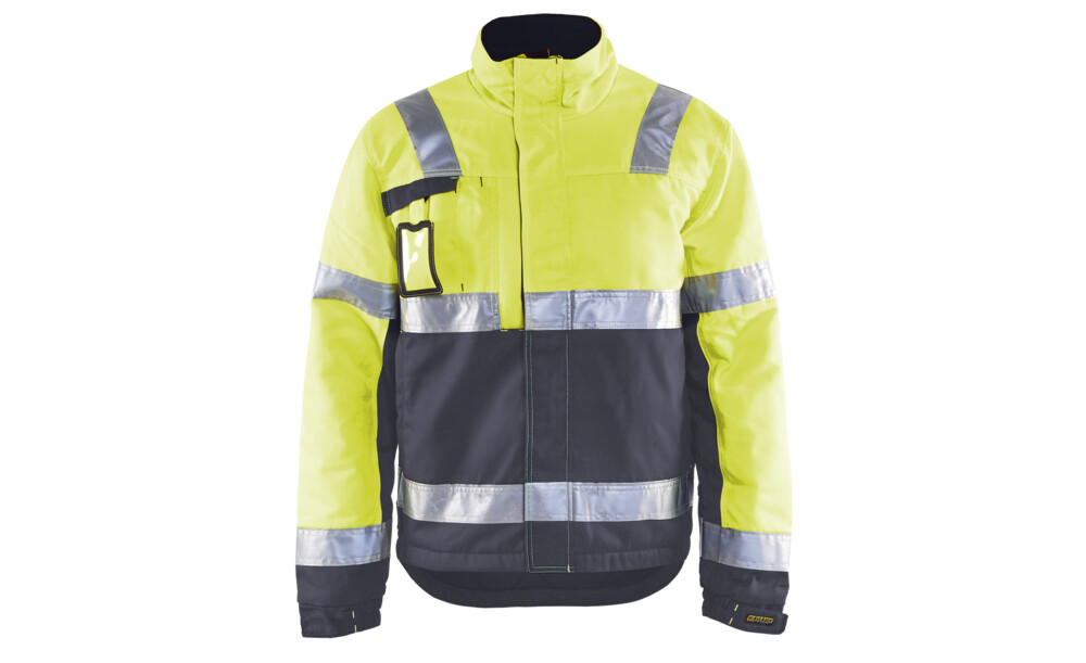 Wasser- und schmutzabweisendes Obermaterial. Zwei Front- und eine Brusttasche, mit Reißverschlüssen. Stiftetasche. Einziehbare Ausweistasche. Verstellbare Bündchen und Saum. Eine Innentasche. 50 mm breite Reflexstreifen. Zertfiziert nach EN 471, Warnschutzkleidung. S-L Klasse 2, XL-4XL Klasse 3, EN 342 zertifiziert, Schutz gegen Kälte.