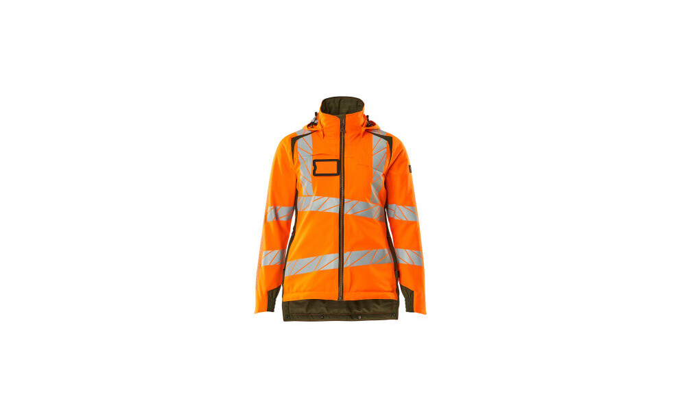 Damen-Passform. Fluoreszierend und mit Reflexschulterstreifen sowie schrägverlaufenden Reflexen. Ausgezeichnete atmungsaktive Eigenschaften sowie wind- und wasserdicht. Mit CLIMASCOT® Lightweight Insulation. Zweifarbig. Nähte sind verklebt. Kapuze ist abnehmbar, gefüttert und mit verstellbaren Elastikschnüren versehen. Verschluss mit wasserdichtem Reißverschluss und inwendiger Wetterschutzleiste. Innentaschen - zwei mit Reißverschluss sowie eine offene aus Netzmaterial. ID-Kartenhalter ist abnehmbar. Vordertaschen mit wasserdichten Reißverschlüssen. Stehkragen. Vorne in der Jacke Rippenbund an der Unterkante innen. Verlängerter Rücken durch herunter knöpfbaren Stoff zum besseren Schutz vor Wind und Wetter. Gummizug an den Handgelenken. Reißverschluss im Futter am Rücken zum Anbringen eines Logos/einer Stickerei. Mit Druckeffekten. Hi-Vis Gruppe A. Zertifiziert nach EN ISO 20471 - Kl. 3 (XS-M = Kl. 2), EN 343 -Kl. 4/1/X und EN 342:2017 - kl. 3/WP (2,01 clo). Das Produkt ist zertifiziert, dass dieses mit einem Logo von 0,1500 m² (XS-M) - 0,0400 m² (L) versehen werden darf. Dieses zulässige Areal darf nicht überschritten werden. Das Logo auf der Vorder- und Rückseite darf jeweils maximal 50% des gesamten Logoareals betragen, um die Zertifizierung gemäß EN ISO 20471 beizubehalten.