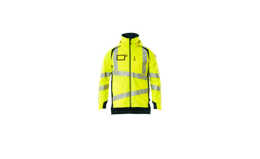 Fluoreszierend und mit Reflexschulterstreifen sowie schrägverlaufenden Reflexen. Ausgezeichnete atmungsaktive Eigenschaften sowie wind- und wasserdicht. Mit CLIMASCOT® Lightweight Insulation. Zweifarbig. Nähte sind verklebt. Kapuze ist abnehmbar, gefüttert und mitverstellbaren Elastikschnüren versehen. Verschluss mit wasserdichtem Reißverschluss und inwendiger Wetterschutzleiste. Innentaschen- zwei mit Reißverschluss sowie eine offene aus Netzmaterial. ID-Kartenhalter ist abnehmbar. Brusttasche mit wasserdichtem Reißverschluss. Vordertaschen mit wasserdichten Reißverschlüssen. Stehkragen. Vorne in der Jacke Rippenbund an der Unterkante innen. Verlängerter Rücken durch herunter knöpfbaren Stoff zum besseren Schutz vor Wind und Wetter. Gummizug an den Handgelenken. Reißverschluss im Futter am Rücken zum Anbringen eines Logos/einer Stickerei. Mit Druckeffekten. Hi-Vis Gruppe A. Zertifiziert nach EN ISO 20471 -Kl. 3, EN 343 - Kl. 4/1/X und EN 342:2017 - kl. 3/WP (2,01 clo). Das Produkt ist zertifiziert, dass dieses mit einem Logo von 0,0300m² (S-5XL) versehen werden darf. Dieses zulässige Areal darf nicht überschritten werden. Das Logo auf der Vorder- und Rückseite darf jeweils maximal 50% des gesamten Logoareals betragen, um die Zertifizierung gemäß EN ISO 20471 beizubehalten.
