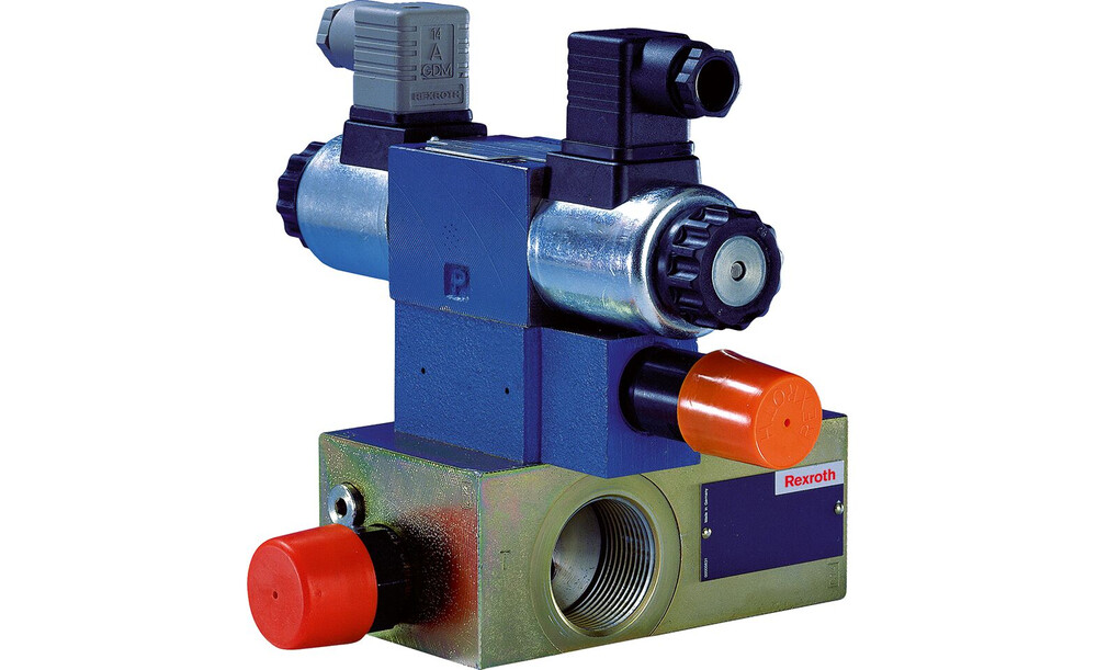 Industrielles Hydraulikventil im hohen Leistungsbereich. Zuverlässiges Druckbegrenzen auf EinstellwertMagnetische Entlastung über ein aufgebautes Wege-SchieberventilVorgesteuertInnensechskant mit SchutzkappeDruckventil in Kegel-Sitz-BauartDruckeinstellbereich 6 … 200 bar; Nenngröße 16, Symbol B, mit Magnetbetätigung, 230 VAC 50/60 Hz