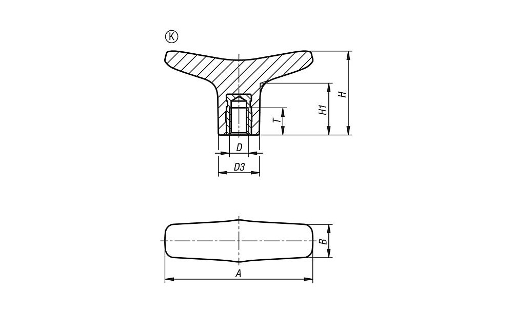 Werkstoff: Duroplast // Gewinde: M6 // Grundfarbe: schwarz // Produktart: T-Griff