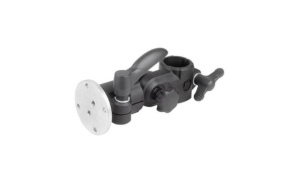 Vibrationssichere, arretierbare Monitorhalterung mit Neigungsverstellung in 15° Rastschritten. Für Monitore/Bediengeräte bis 25 kg (statisch). Mit Universal-Anschraubplatte. Der Grundträger ist geeignet für die Befestigung an Rundrohren Ø30 mm.