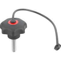 Durch das Sicherungsband kann der Sterngriff unverlierbar an einem Grundkörper befestigt werden.