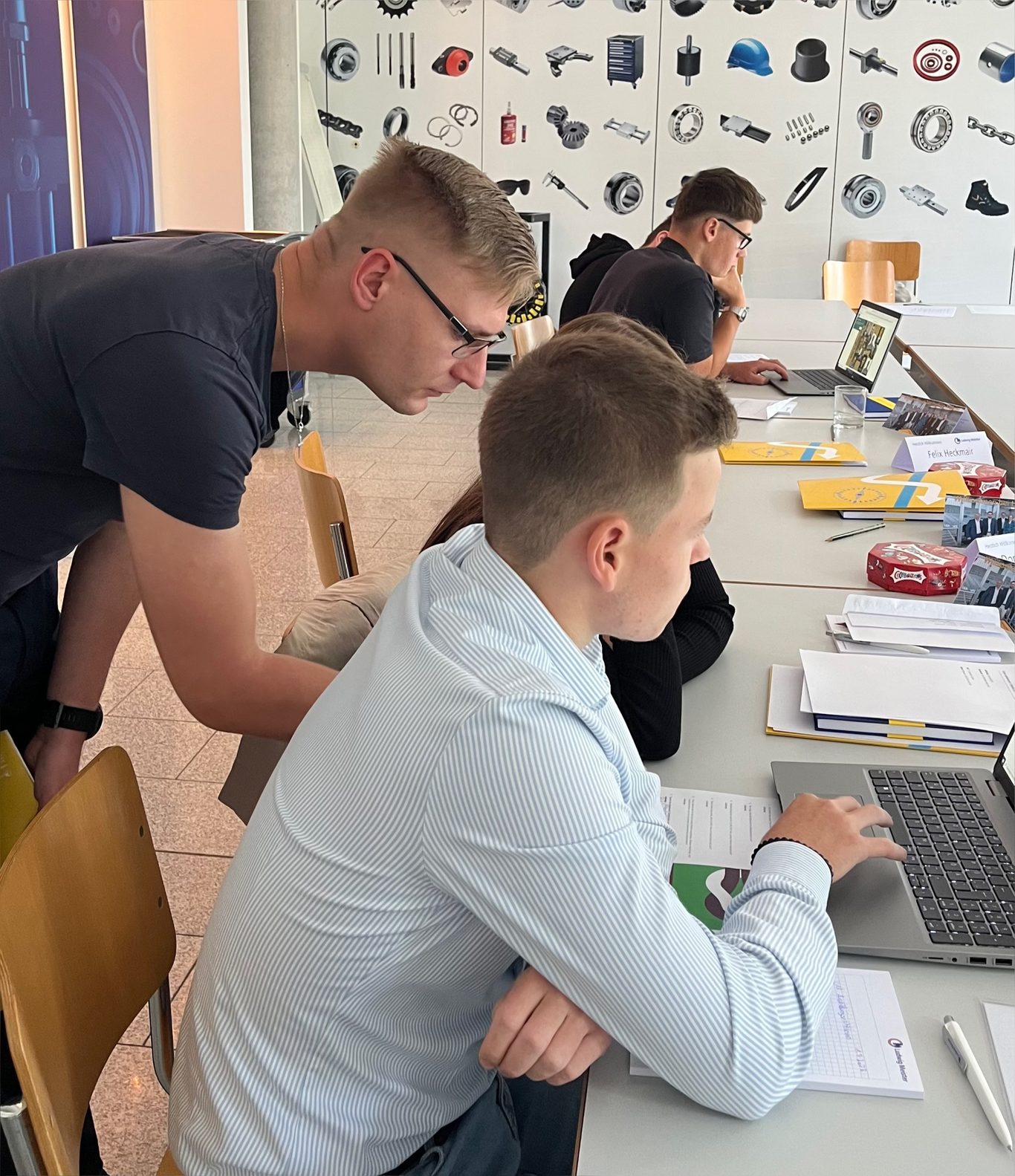 In den folgenden Sessions wurden allgemeine Informationen zur Ausbildung vermittelt, darunter der Ausbildungsablauf, der geplante Einsatzplan und die grundlegenden Unternehmensstrukturen. Ein gemeinsames Mittagessen bot den Azubis die Chance, sich auszutauschen und erste Eindrücke zu teilen. Am Nachmittag erhielten die Azubis eine Einführung in das Verfassen von Berichtsheften und abgerundet wurde der Tag mit einem Intranet-Suchspiel, bei dem die Azubis die firmeninterne Wissensbasis spielerisch erkunden konnten.