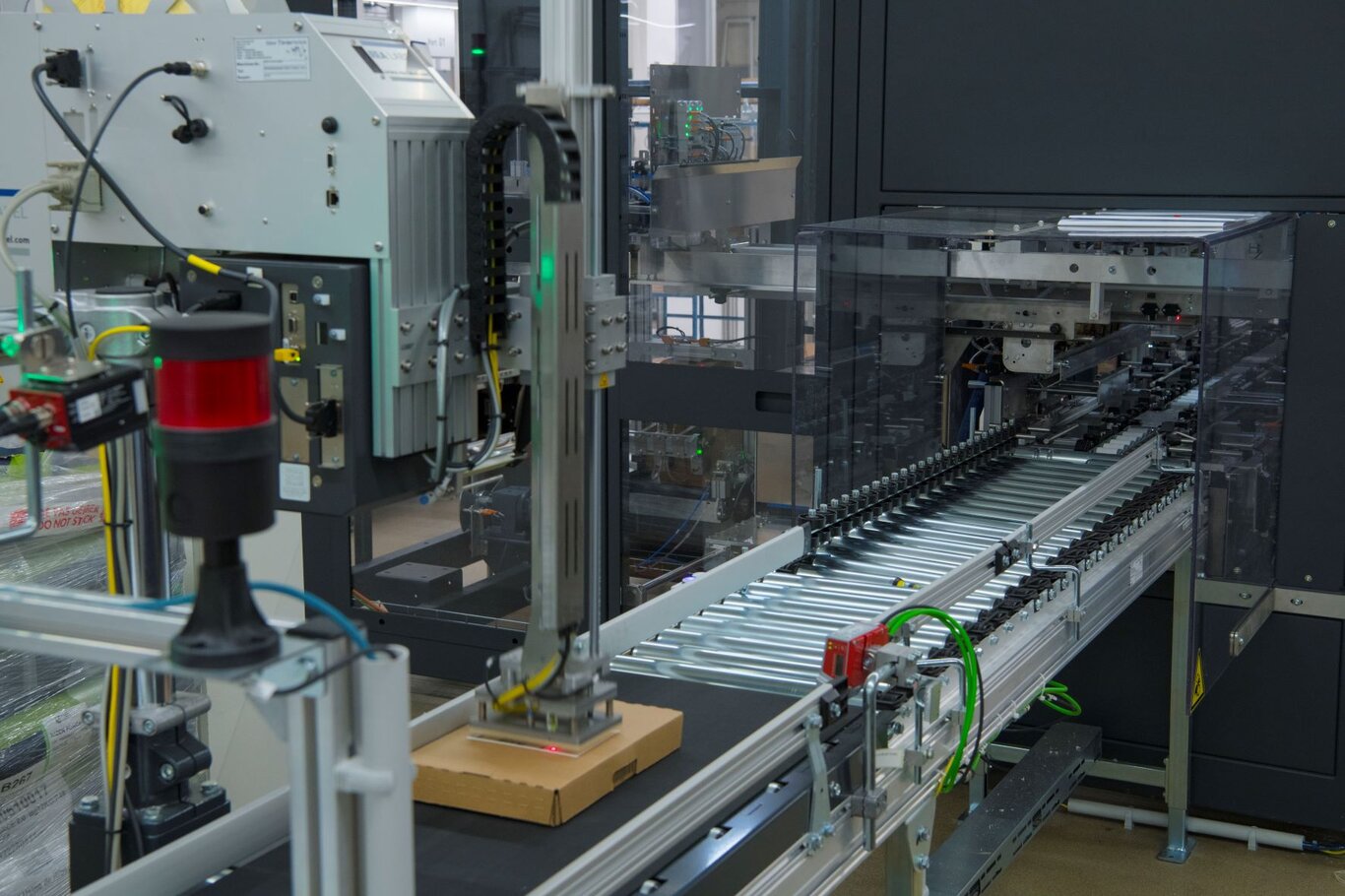 Im Bild der automatische Paketaufsteller, eine der aktuellsten Innovationen in der Zentrallogistik bei Ludwig Meister.
