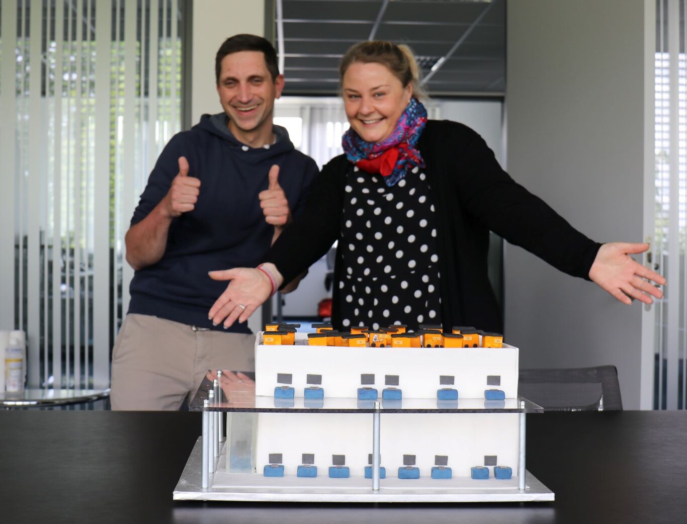 "Zuckerbäckerin" Angela Schmidt und Matthias Dambach mit der "AutoStore Torte".