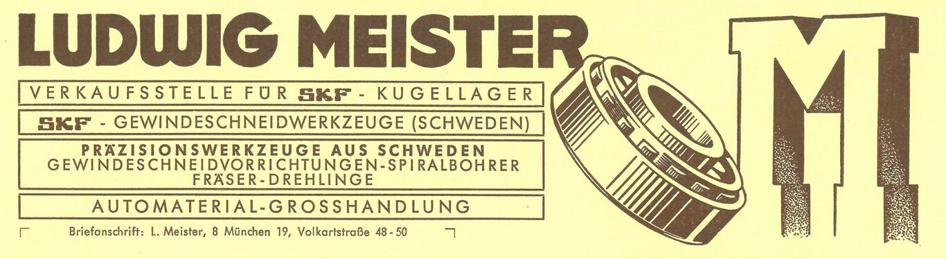 Als mein Vater sich selbständig machte, fragte er seinen Chef, ob dieser bereit wäre, ihn mit Wälzlagern zu beliefern. Die Antwort: „Beliefern ist kein Problem, aber davon kannst Du nicht leben!“. Doch da irrte er sich. Das Geschäft war ein reiner Ersatzteilhandel mit Lagern und Fahrzeugteilen aller Art. Im Jahr 1956 – aus der VKF war inzwischen SKF geworden – bot die SKF uns den Verkauf der hauseigenen Gewindebohrer in ganz Südbayern an und damit veränderte sich die LUDWIG MEISTER KG entscheidend: Diese Werkzeuge sollten hauptsächlich bei handwerklichen und industriellen Herstellerbetrieben abgesetzt werden und damit wurden wir zum industriellen Zulieferer, der wir heute mit 60 Prozent unseres Umsatzes auch noch sind! Das Fahrzeugteilegeschäft haben wir in den 80er Jahren aufgegeben und wurden damit zum reinen Technischen Händler.