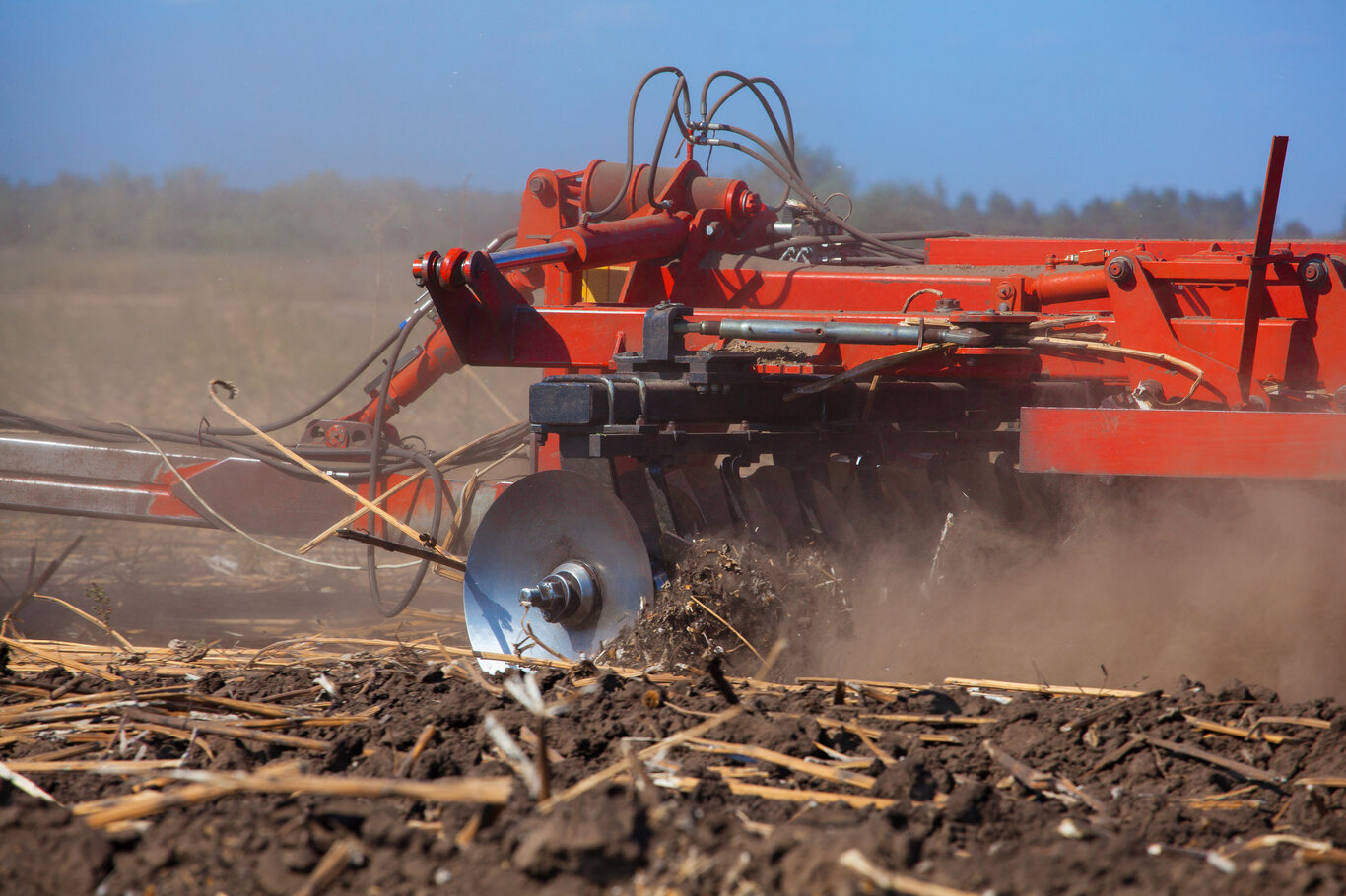 Scheibenpflugmaschinen schneiden, brechen und drehen die obere Erdkruste mittels separat gelagerter großer konkaver Stahlscheiben.