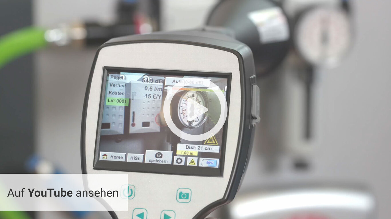 Ultraschall Leckortungsgerät mit integrierter Kamera - Zeigt Leckagerate in l/min und Kosten in €/Jahr