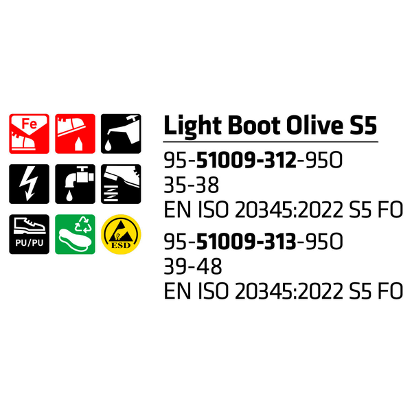 SIEVI Sicherheits-Gummistiefel LIGHT BOOT OLIVE S5 Größe 36