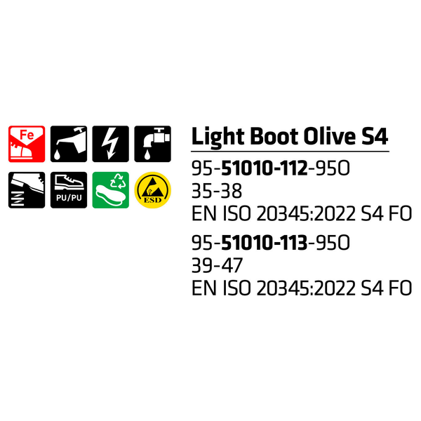 SIEVI Sicherheits-Gummistiefel LIGHT BOOT OLIVE S4 Größe 45