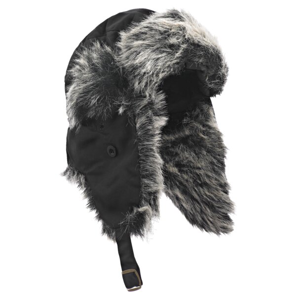 Aus 100% Nylonoberfläche PU, innen mit flauschigem Webpelzfutter. Einklappbare Ohrenklappen