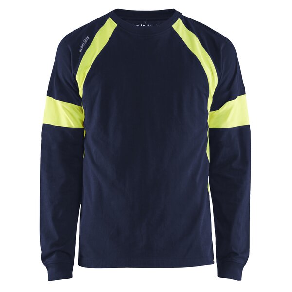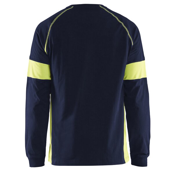 Langarm Shirt aus Baumwolle mit gelben High Vis Einsätzen um eine gute Sichtbarkeit zu gewährleisten.